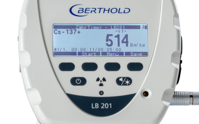 - LB 201的主机单元可显示以 cps、Bq/kg 和 Bq/l 为单位的测量结果,并附带测量时间。